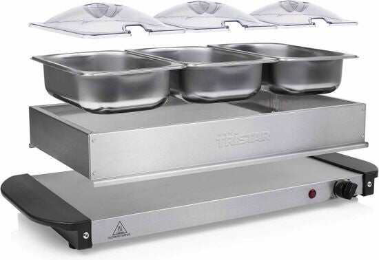 Met onze multifunctionele buffetwarmer hou jij, tijdens je feest, het eten lekker warm. De buffetwarmer kan worden gebruikt als buffet verwarmer, maar ook als warmteplaat om je eten op warm te houden. Zo kan jij de borden en pannen op de plaat zetten om deze op de juiste temperatuur te houden. De geïntegreerde handvaten zorgen ervoor dat je de warmteplaat makkelijk kan verplaatsen als dit nodig is.